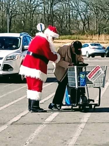 Then a neatly kept long gray headed man with a neatly kept long beard stepped toward my booth with a quiz-a-tiv look in his eye. He was a large built man and had on a blue linen suit with sandals. He mentioned he was getting ideas because he had written a book. He handed me his business card while he read the back of my book. His card had his new book on it, The Santa Claus Chronicles. Then he gave me another card, it said “Santa loves you” with a check next to the nice box. It also said Jesus, God’s gift to the world. On the back it said he read the Christmas story at the North Pole City store in Oklahoma City. I snatched up a copy of my book, wrote “Thank you for your service” on the inside cover, signed it and pushed it in front of him. He was startled and asked how much he owed me. I felt compelled to say “Nothing.” A tear welled up in his eye and he said “Thank you!” I said “thank you as well.” I guess it’s unusual to give “Santa” a present.